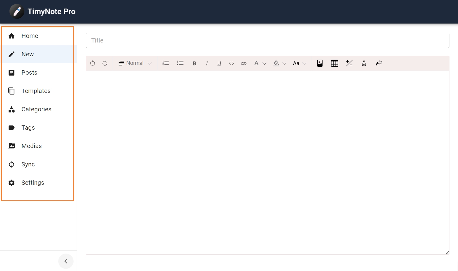 In the latest version of TimyNote Pro, the left sidebar has been redesigned as a collapsible menu. At the same time, the editor width has been increased to maximize the available writing space, providing a more focused and efficient editing experience.