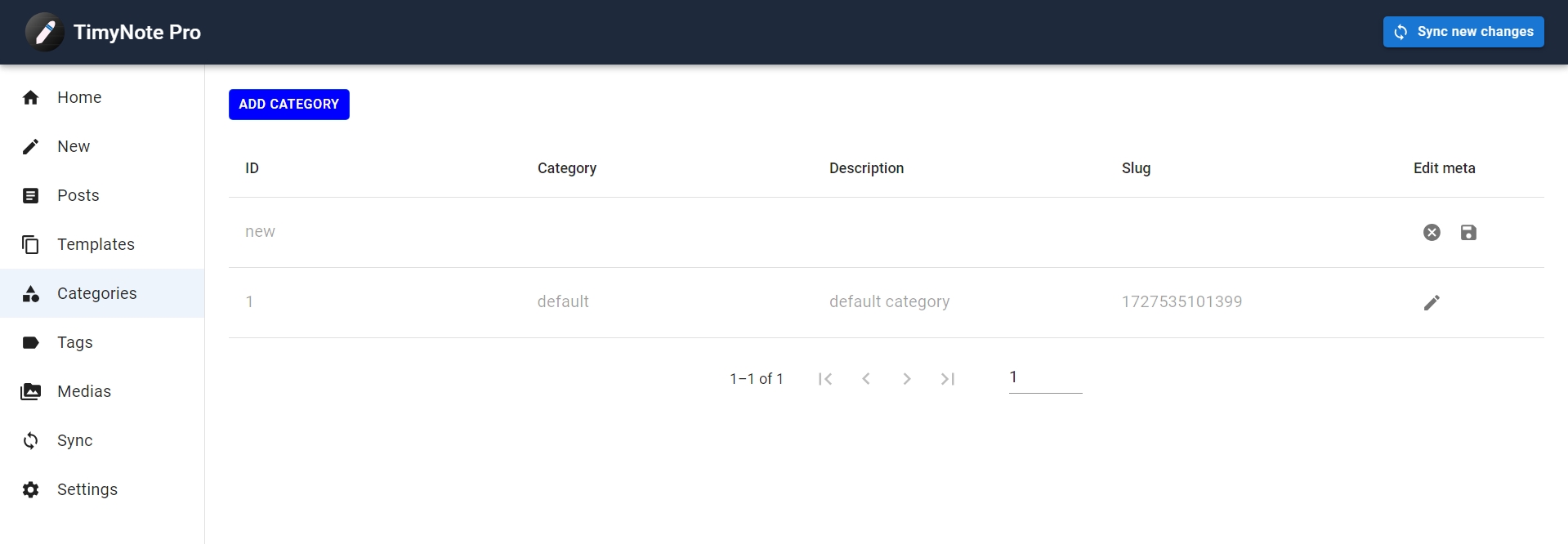 On the Categories page, you can add new categories or modify the metadata of existing ones (such as the category name, description, and slug).