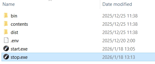 In the previous version, clicking start.exe would launch TimyNote Pro the first time and close it on the second click. With the addition of a new stop file, TimyNote Pro can now be stopped directly by clicking this file, while start.exe no longer controls closing the application. This improvement makes starting TimyNote Pro smoother and stopping it faster and more intuitive.